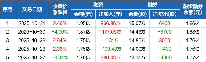 海德股份:融资净买入866.86万元,融资余额1.95亿元(10-31)