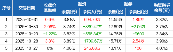 贵州轮胎:融资净买入694.79万元,融资余额3.81亿元(10-31)