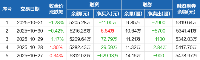 粤高速A:融资净偿还11万元,融资余额5205.28万元(10-31)