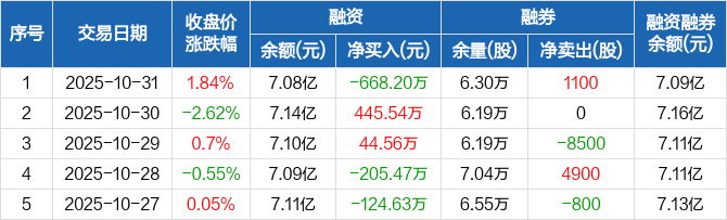 航锦科技:融资余额7.08亿元,创近一年新低(10-31)