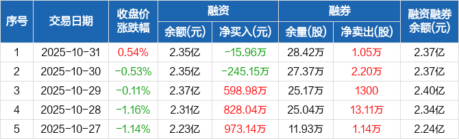 珠江啤酒:融资净偿还15.96万元,融资余额2.35亿元(10-31)