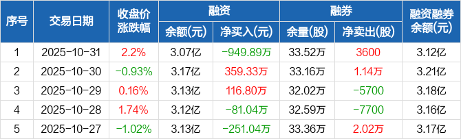 索菲亚:融资净偿还949.89万元,融资余额3.07亿元(10-31)