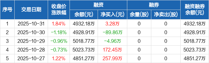 速达股份:融资净买入3.28万元,融资余额4932.18万元(10-31)