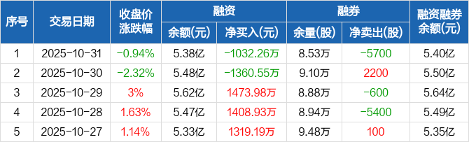 西部材料:融资净偿还1032.26万元,融资余额5.38亿元(10-31)