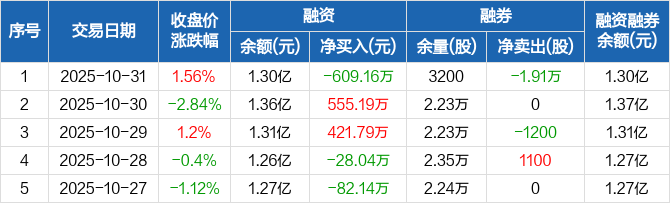 桂林三金:融资净偿还609.16万元,融资余额1.3亿元(10-31)