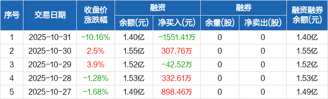 美邦服饰:融资净偿还1551.41万元,融资余额1.4亿元(10-31)