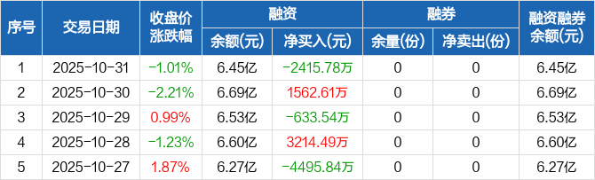 恒生科技ETF:融资净偿还2415.78万元,融资余额6.45亿元(10-31)