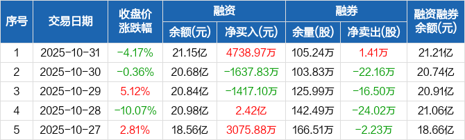 铜陵有色:融资余额21.15亿元,创历史新高(10-31)