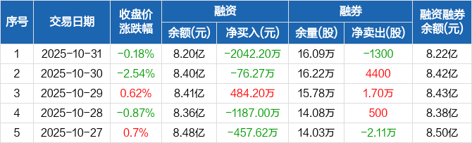 千方科技:融资净偿还2042.2万元,融资余额8.2亿元(10-31)