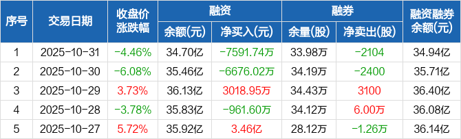 英维克:融资净偿还7591.74万元,融资余额34.7亿元(10-31)