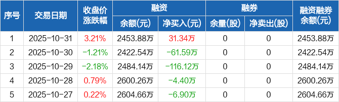 超越科技:融资净买入31.34万元,融资余额2453.88万元(10-31)