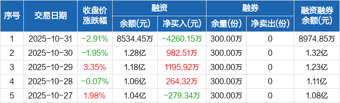 创业50ETF:融资净偿还4260.15万元,创历史新高(10-31)