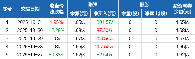 兴源环境:融资净偿还304.57万元,融资余额1.65亿元(10-31)