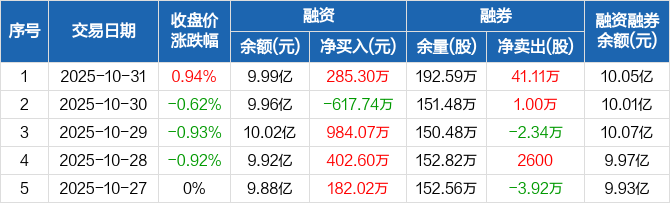 青农商行:融资净买入285.3万元,融资余额9.99亿元(10-31)