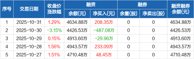 联盛化学:融资净买入208.35万元,融资余额4634.88万元(10-31)