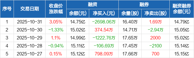 智飞生物:融资净偿还2698.06万元,融资余额14.75亿元(10-31)