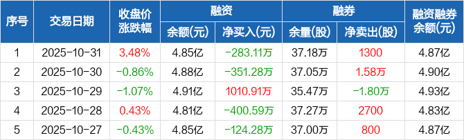 创业慧康:融资净偿还283.11万元,融资余额4.85亿元(10-31)