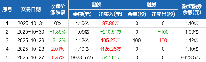 太阳电缆:融资净买入87.8万元,融资余额1.1亿元(10-31)