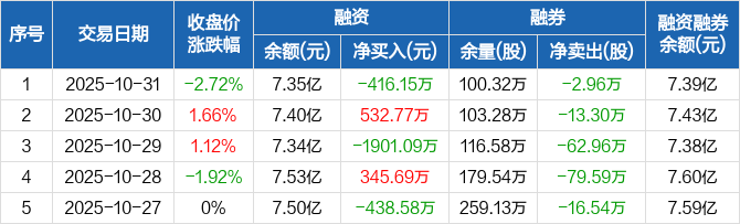 渤海租赁:融资净偿还416.15万元,融资余额7.35亿元(10-31)