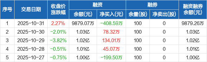 德必集团:融资净偿还408.59万元,融资余额9879.07万元(10-31)