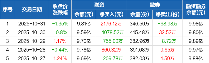 沪深300ETF:融资净买入2176.12万元,融资余额9.81亿元(10-31)