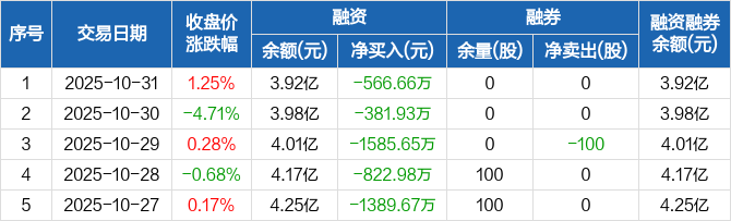 永贵电器:连续5日融资净偿还累计4746.88万元(10-31)