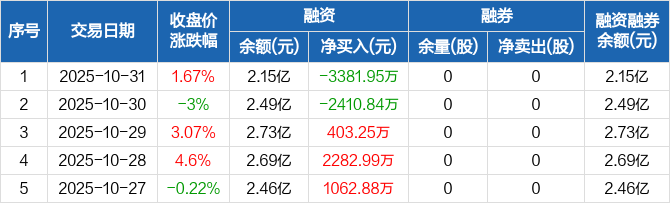 青木科技:融资净偿还3381.95万元,融资余额2.15亿元(10-31)