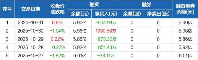 武汉天源:融资净偿还604.94万元,融资余额5.9亿元(10-31)