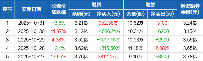 新雷能:融资净买入952.35万元,融资余额3.21亿元(10-31)