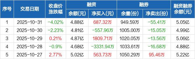 芯片ETF:融资净买入687.32万元,融资余额4.88亿元(10-31)
