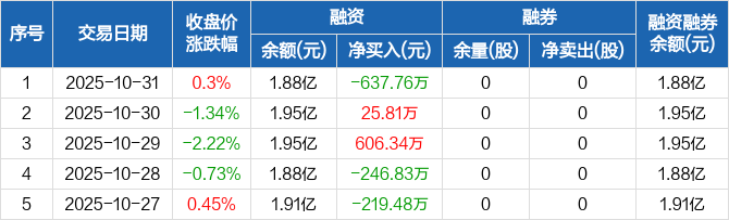 中金辐照:融资净偿还637.76万元,融资余额1.88亿元(10-31)