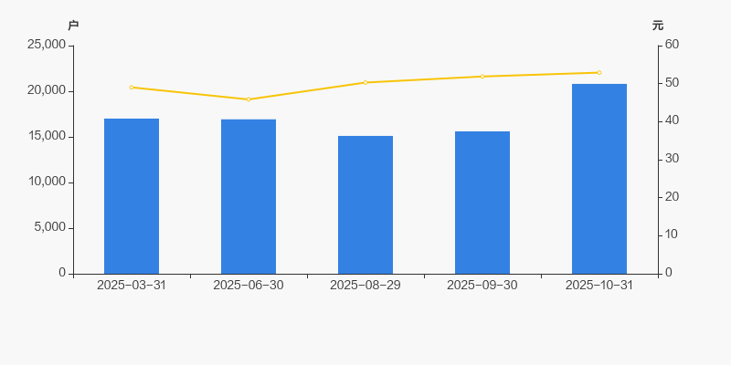 截至2025年10月31日,公司最新总股本为2.22亿股,其中流通股本为1.11亿股。户均持有流通股数量由上期的7118股下降至5338股,户均流通市值28.24万元。