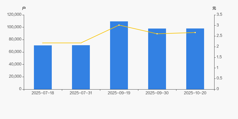 2025年7月18日至今,公司股东户数显著增长,区间涨幅为38.56%。2025年7月18日至2025年10月20日区间股价上涨22.40%。