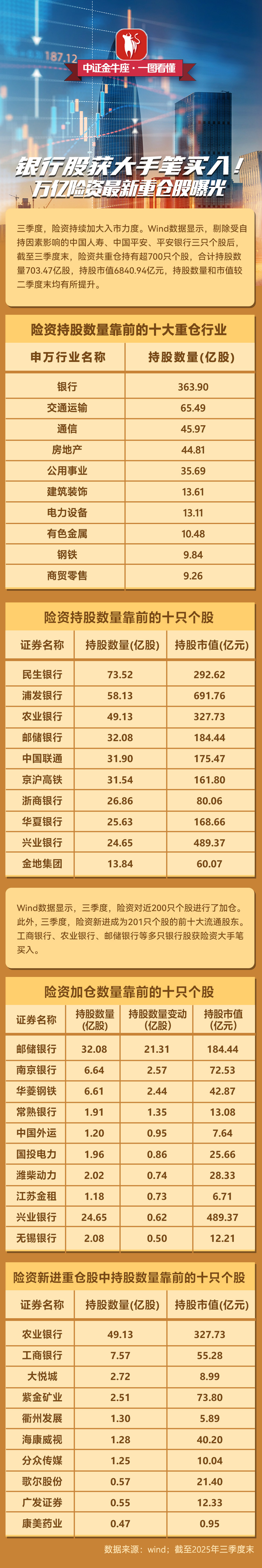 【一图看懂】银行股获大手笔买入!万亿险资最新重仓股曝光