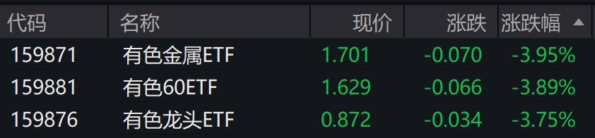 受重仓股调整影响,有色金属相关ETF跌近4%。