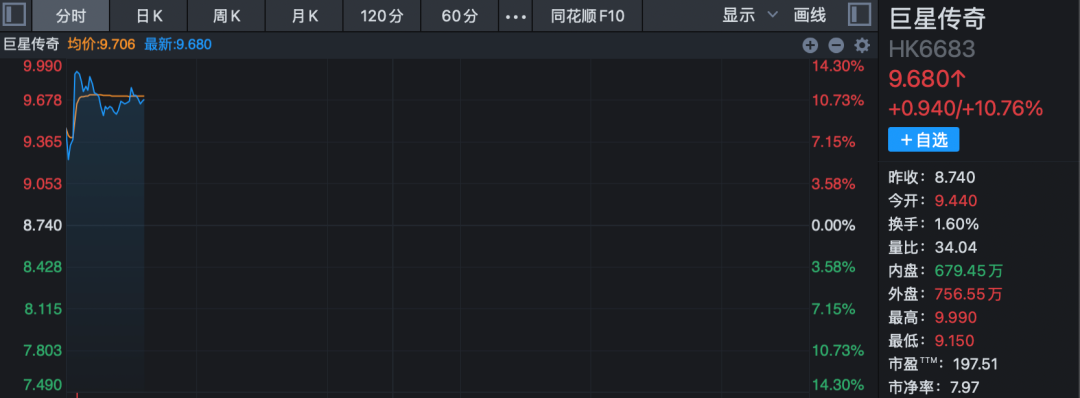 此前,IP战略价值对巨星传奇股价表现明显。公司股价曾因周杰伦以“周同学”身份入驻抖音单日暴涨超160%。