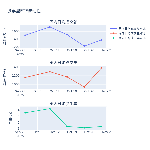 流动性方面,上周股票型ETF市场日均成交额增加13.3%,日均成交量增加46.7%,换手率增加0.22%。