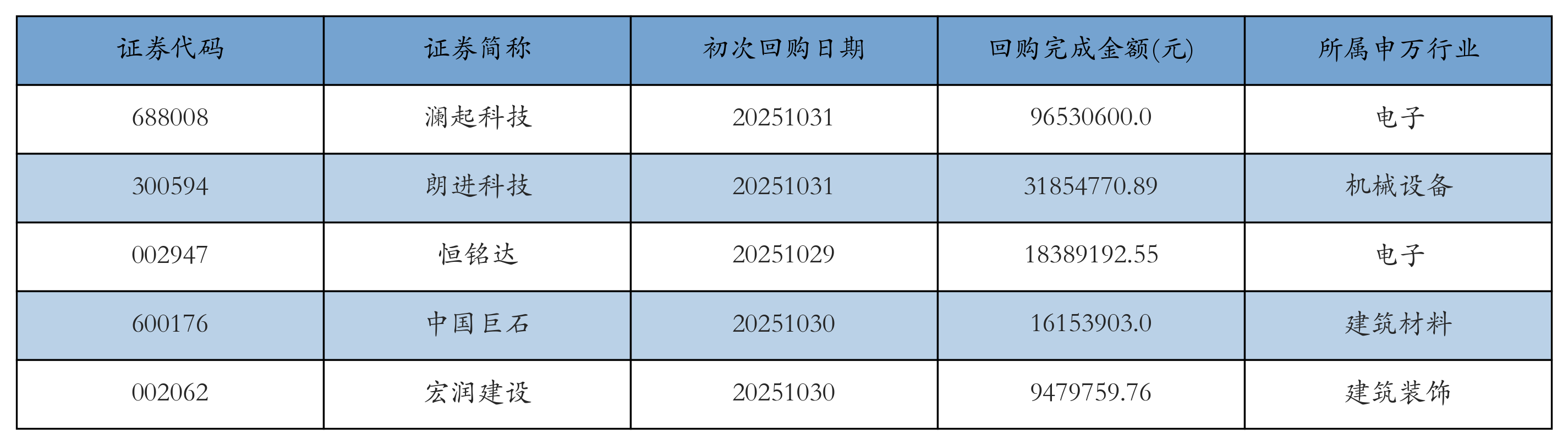 上周共有19条开始执行回购公告,其中执行金额最多的5条公告为: