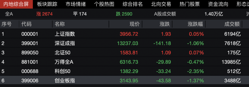 A股市场今天上午整体低位震荡,盘中一度近3000只个股下跌。上证指数盘中一度跌近0.5%,但临近上午收盘成功翻红;创业板指盘中一度跌超2%,截至午间收盘,跌幅收窄至1.37%。
