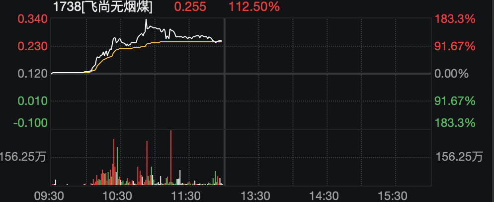 其他大幅波动的港股中,飞尚无烟煤领涨,盘中涨幅一度超过180%。