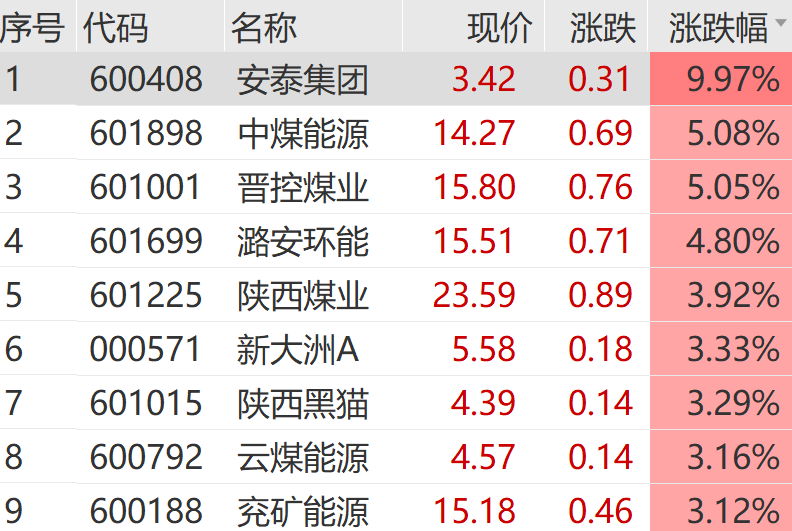 11月3日上午,煤炭、石油石化等能源板块走高。煤炭股方面,安泰集团盘初直线涨停,中煤能源、晋控煤业等跟涨。