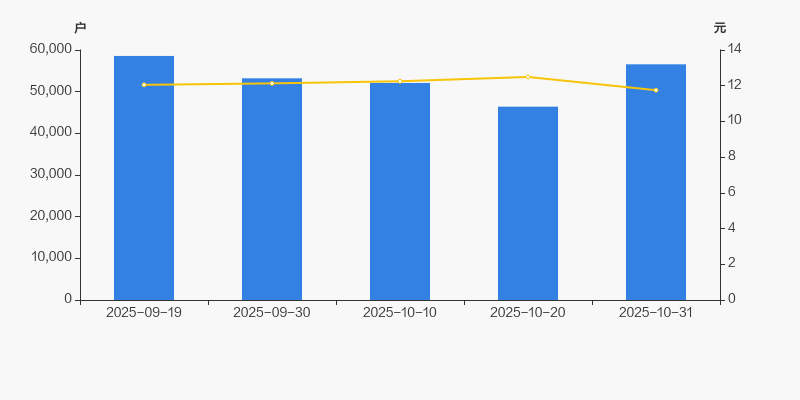 截至2025年10月31日,公司最新总股本为28.19亿股,其中流通股本为25.1亿股。户均持有流通股数量由上期的5.41万股下降至4.44万股,户均流通市值52.13万元。