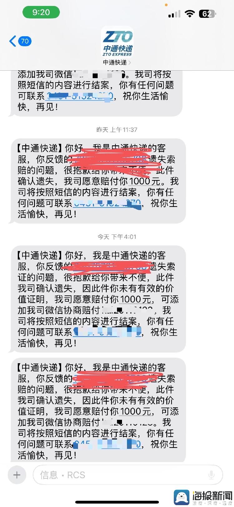 包裹“蒸发”:涉事快递员及站点电话均打不通只肯赔付1000元