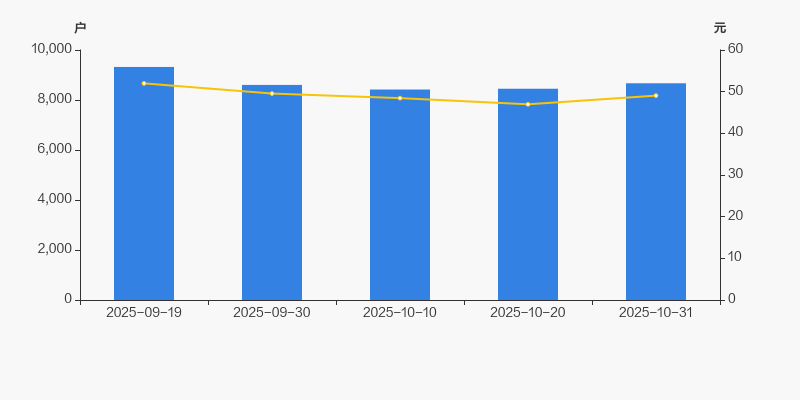 2025年9月19日至今,公司股东户数有所下降,区间跌幅为7.00%。2025年9月19日至2025年10月31日区间股价下降5.65%。
