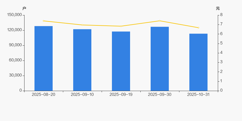 2025年8月20日至今,公司股东户数显著下降,区间跌幅为11.74%。2025年8月20日至2025年10月31日区间股价下降9.74%。