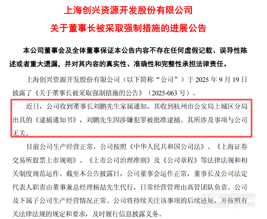 *ST创兴强调,刘鹏所涉及事项与公司无关。截至公告披露日,公司董事会运作正常,公司及下属子公司生产经营情况正常。