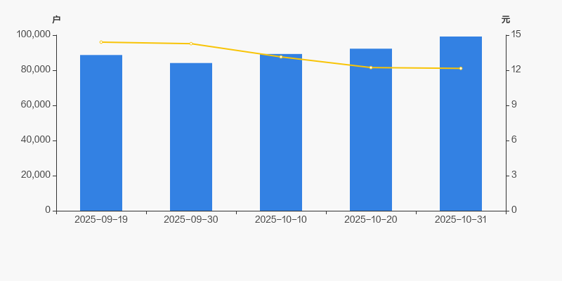 自2025年9月30日以来,公司股东户数连续3期上涨,截至目前增幅为17.93%。2025年9月30日至2025年10月31日区间股价下降14.79%。