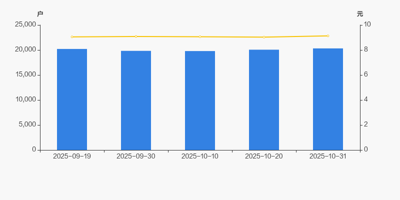2025年9月19日至今,公司股东户数有所增长,区间涨幅为0.54%。2025年9月19日至2025年10月31日区间股价上涨0.88%。
