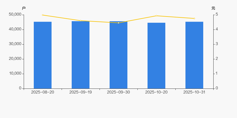 2025年8月20日至今,公司股东户数有所增长,区间涨幅为0.02%。2025年8月20日至2025年10月31日区间股价下降4.62%。