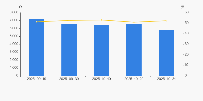 2025年9月19日至今,公司股东户数显著下降,区间跌幅为19.36%。2025年9月19日至2025年10月31日区间股价上涨2.07%。